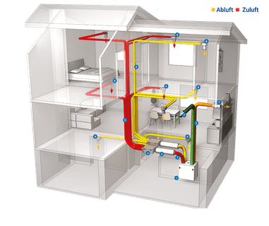 Die kontrollierte Wohnraumlüftung führt kontinuierlich frische Luft von außen zu, während verbrauchte und feuchte Luft abgeführt wird. Dieser Austausch erfolgt automatisch und ist so konzipiert, dass er den individuellen Bedürfnissen Ihres Haushalts entspricht. Durch die stetige Erneuerung der Raumluft wird die Konzentration von CO2, Schadstoffen und Allergenen signifikant reduziert, was zu einem gesünderen Wohnumfeld führt.